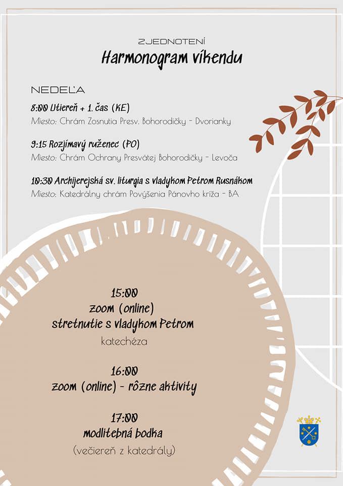 V rámci programu bude v nedeľu poobede online stretnutie mladých s vladykom Petrom Rusnákom. Na tento program sa treba registrovať prostredníctvom formulára nižšie, aby Vám zaslali prístupové kódy na ZOOM.
