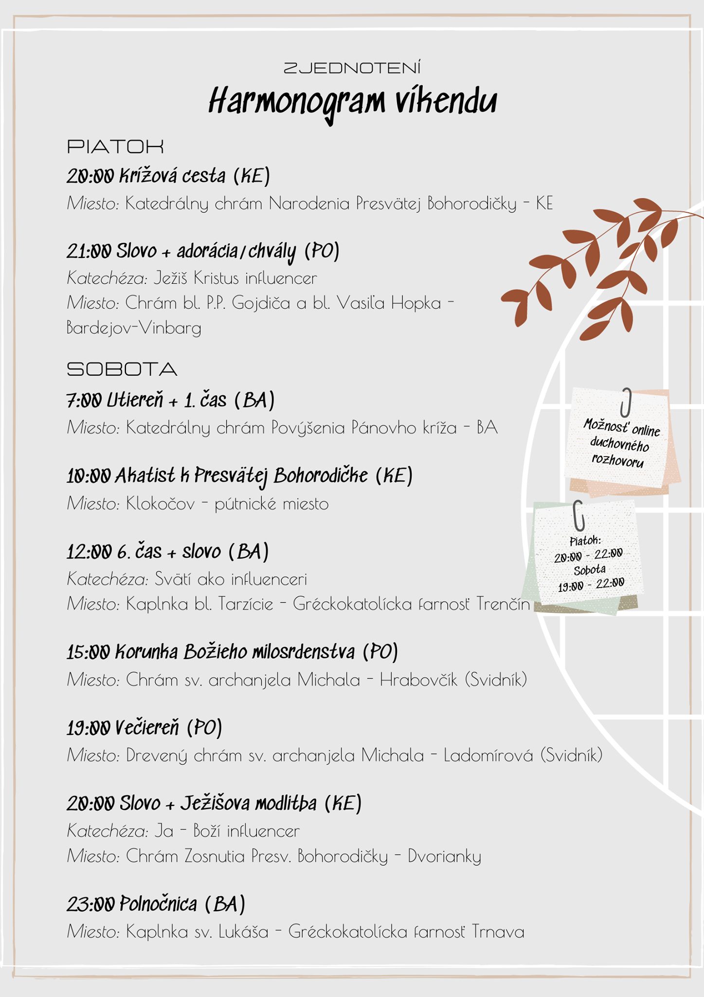 Celý program je v prílohe a vysielaný bude online na facebookovej stránke: Mládež Bratislavskej eparchie | Facebook